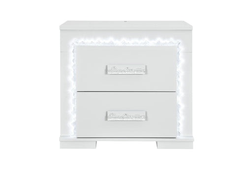 Global Furniture USAKeep essentials close at hand with the Naomi Nightstand, featuring a chic light grey lacquer finish, integrated LED lighting, and smooth-gliding dr...