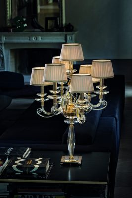 ESFA Elegant lamp to bright up any room. Includes 7 Lights. Color: Transparent Finish: Shiny Gold This elegant seven-branched candelabra is part o...