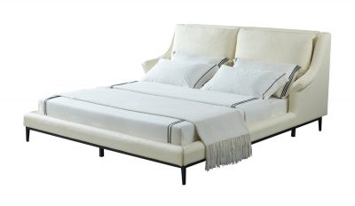 ESF**Get three products from the sale section and enjoy additional 10% off ** Stylish modern top grain leather bed in off white cream color #5825. M...
