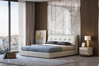 ESFModern Bedroom Set Available as Bed, Nightstand, Dresser, Mirror and Chest. Special Order Product. FABRIC PHOTO - VELVET SERIE B - COLOR GL 02 IVORY