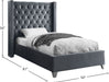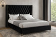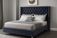Elegant and eye-catching, the stunning Aiden Bed from Meridian Furniture is the perfect addition to any bedroom. velvet covers the deep tufted design. A beautiful wing bed design is complimented by hand applied nail head details. Strength and beauty is guaranteed with a solid wood frame and stainless steel legs.