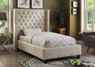 Elegant and eye-catching, the stunning Ashton Bed from Meridian Furniture is the perfect addition to any space. Linen covers the deep tufted design. Strength and beauty is guaranteed with a solid wood frame and legs.