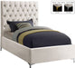Revamp your bedroom space with this sumptuously crafted Cruz bed from Meridian furniture. The star of the show here is the headboard its tufted with deep button tufts that not only keep its thick padding in place and aloft, but also add a modern, textural look to your space. Sleek velvet upholstery feels luxuriously upscale to the touch, and the high headboard and the minimalist platform frame with metal feet add a timelessly contemporary silhouette to your space.