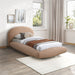 Refresh your bedroom with the Genesis tan faux shearling teddy fabric bed, upholstered in soft plush. The rounded headboard, rails, and footboard create the illusion of a floating bed, introducing a sleek contemporary touch to your space. Combining comfort and style seamlessly, this bed's luxurious fabric and innovative design make it a standout centerpiece. It's perfect for enhancing both the elegance and relaxation of your bedroom.