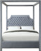 Ensure that every night's sleep is a dreamy escape with this Rowan Bed as the centerpiece of your bedroom sanctuary. This bed features a velvet-clad canopy that beckons you to rest like royalty. The deeply detailed tufting on the scalloped headboard makes for a sumptuous presentation, and the nail heads add to the luxe look of this exquisite bed.