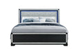 The Soleil King Bed blends modern sophistication with a touch of glamour. Its rich dark charcoal frame is paired with a grey upholstered headboard outlined in shimmering crushed crystal trim. The built-in LED lights add a warm, ambient glow, making it a show-stopping centerpiece for your bedroom.