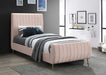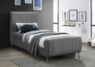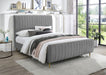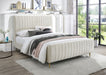 Slip into the lap of luxury with this Zara Bed. This beautiful bed is padded to the max on its headboard and footboard for a look that is nothing short of upscale. The luxe design is amplified by the bed's rich velvet upholstery and its deep detailed channel tufting, which also serves to keep the interior padding aloft, full, and comfortable while you relax or unwind in bed. The bed has legs for a regal touch, and it comes with slats, so it doesn't require a box spring.