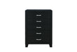 The Reid Chest from the Reid Bedroom Collection is a chic storage piece with a sleek black wood finish and glamorous hardware. This chest offers ample storage space while enhancing the modern aesthetic of your bedroom.