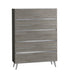 The Victoria Bedroom collection is the newest and most exciting addition to the J&M bedroom lineup. The Victoria bedroom is made in Italy with the finest materials. The bed and case goods feature a light grey oak veneer, accented by brushed nickel accents. The sides of the headboard feature a light grey marble look, which flows down upon the tops of the accompanying nightstands. The matching dresser and chest tops also feature this same light grey marble look. This seamless combination of finishes creates a perfect collection of furniture meant to turn any home into a luxury venue.