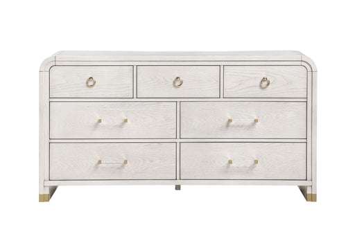 Global Furniture USASophisticated design meets everyday functionality in the Malmo Dresser. Finished in a light beige oak veneer with rounded edges, it features seven ...