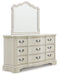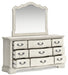 Add a touch of romance to your bedroom with this dresser and mirror. Its antiqued white painted finish and serpentine-shaped silhouette are the definition of easy elegance. Custom-designed aged pewter-tone hardware adds surprisingly casual appeal.