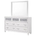 Step into a world where glitz meets function with this dresser and mirror set, designed to add a dash of glamour to your bedroom. The dresser, with its bold black frame and glittery metallic drawer fronts, features three smaller drawers atop four larger ones, providing ample organization for your attire. Faceted crystal hardware enhances its sparkle, making it ideal for spaces in need of some shine. The sleek, modern mirror, with a bold black finish and embossed frame, complements the dresser, offering a streamlined look that's perfect above the dresser or as a standalone piece on the wall.