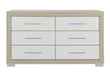 The Emma Dresser adds a touch of sophistication to your bedroom with its sleek two-tone natural wood and white finish. This dresser features multiple spacious drawers, ideal for storing clothing, accessories, and more. With its clean lines and modern design, it offers both style and functionality, perfectly pairing with other pieces of both Emma or Madison collections.