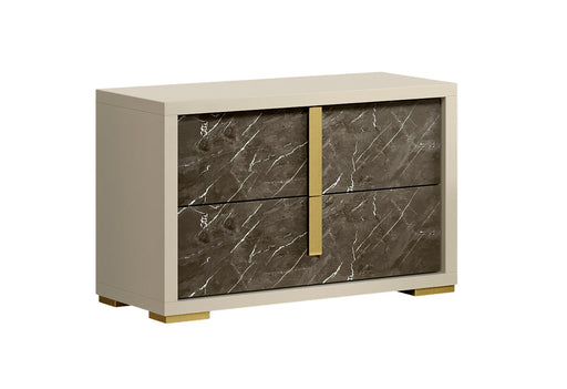 The Fiocco Bedroom is our newest Italian set that redefines luxury. The “Gold Leaf” trim in front of the case goods is replicated on the vertical h...
