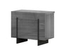 The Blade Bedroom Collection showcases an innovative and luxurious design created by the metal “blades” that start underneath the case goods and extend to the front to serve as a handle for the drawers. The design is replicated on the headboard where two metal bars sink into a velvety upholstered panel. Hidden behind the edges of the panel there is a stripe of led lights that serve as courtesy lights operated by invisible switches located on each side of the headboard. These panels feature eucalyptus grain black stripes over a grey color with a glossy finish. This sophisticated modern-industrial design is a great addition to the furnishing of your house.