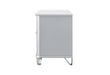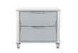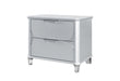The Lando Nightstand is a stylish and functional addition to your bedroom. With its grey finish and acrylic accents, this nightstand provides convenient storage space with its full extension drawers and top felt-lined drawer. The textured drawer fronts enhance its contemporary design, ensuring it complements the rest of the Lando Collection beautifully.