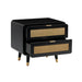 Drawing inspiration from the ever classic mid-century style, the Christine nightstand adds a retro look to any space its placed. This nightstand features spacious drawers, a black Acacia finish embellished with cane webbing and conical legs to complete the look.