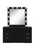 Elevate your beauty routine with the Ella Black Vanity Set by Global Furniture, a perfect blend of luxury, innovation, and modern design. Finished in a sleek black, this stunning vanity features a built-in LED bulb mirror for bright, clear lighting'ideal for flawless makeup application or daily grooming. The glass top is accented with soft LED lighting, adding a stylish glow to your space, while a built-in speaker brings entertainment and connectivity to your routine. Included with the set is a matching stool with built-in storage drawers, offering a comfortable seat and extra room for beauty essentials or accessories. Sleek, functional, and packed with modern features, the Ella Black Vanity Set turns any bedroom or dressing area into a chic, organized personal retreat.