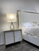 The Fiocco Bedroom is our newest Italian set that redefines luxury. The “Gold Leaf” trim in front of the case goods is replicated on the vertical handles of the drawers and it is scaled to deliver a tasteful design that is rich but not overwhelming. Gold finishes are an everlasting trend in luxury furniture so the glossy white lacquer color. The flooding design of the bed suspended with a metal central bar is matched by the one on the case goods. The upholstered headboard is covered in eco-leather, a material that stands well when in touch with human hair.