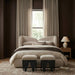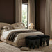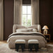 Bold and architectural, the Altair velour fur fabric upholstered bench combines avant-garde design with plush luxury. The seat is covered in soft velour fur fabric, offering an indulgent texture that invites you to sit and relax. Its distinctive rich black oak veneer wooden base, featuring sharp, angular legs, brings a sculptural, modern touch to any room.