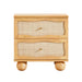 Experience the ultimate blend of boho and modern design with the Grappa Bedroom Collection, where the cool natural aesthetic shines through its natural raffia woven front panels, complemented by the solid, durable rubberwood base. Each piece boasts exquisite details including soft-close drawers with brass-finished handles, solid wood hand-turned ball feet, and rolling curves that evoke the serenity of ocean waves. Transform your sleeping space into a tranquil retreat, embodying the spirit of coastal cool and comfort with the Grappa Bedroom Collection.