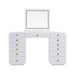 Introducing the Hollywood White Vanity Desk: Your ultimate #GRWM station! Decked out with metal hardware and a top drawer lined for all your treasures, it's perfectly paired with the dazzling Lola LED panel vanity mirror for that extra sprinkle of Hollywood glam. This beauty boasts a spacious tabletop mirror to catch that good light, making your makeup pop and those selfies fire while ensuring cleanup is a breeze. With tons of drawers, including some shallow ones, it's all about keeping your products organized and easily accessible. For added versatility, the mirror can easily be disassembled or hung on the wall.