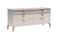 A modern platform bed with a headboard LED lighting system. The Madison Bedroom is a combination of lacquer and wood veneers. This high gloss finish adds warmth and depth and creates the perfect addition to any bedroom setting. The case goods have a soft-track closing mechanism with elegant metallic handles. This platform bed includes an Italian Metal frame with wooden slats for durability.