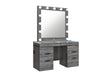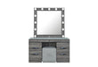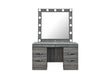 Elevate your beauty routine with the Lexi Grey Vanity Set by Global Furniture, a perfect blend of luxury, innovation, and modern design. Finished in a cool grey, this stunning vanity features a built-in LED bulb mirror for bright, clear lighting ideal for flawless makeup application or daily grooming. The glass top is accented with soft LED lighting, adding a stylish glow to your space, while a built-in speaker brings entertainment and connectivity to your routine. Included with the set is a matching stool in a grey fabric, offering a comfortable seat for getting ready. Sleek, functional, and packed with modern features, the Lexi Grey Vanity Set turns any bedroom or dressing area into a chic, organized personal retreat.