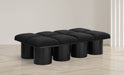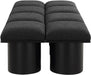 Bring valuable seating and remarkable style to your space with this Pavilion Boucle Fabric Bench, an exquisite balance of style and usability for the entryway, bedroom, and beyond. Crafted from oak veneer with a black finish, this bench has a 4-inch-thick seat cushion that's channel-tufted for a touch of luxury. The bench's columnar bases add a dash of Art Deco design, making it a captivating focal point in any room.