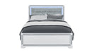 The Soleil Queen Bed blends modern sophistication with a touch of glamour. Its white frame is paired with a grey upholstered headboard outlined in shimmering crushed crystal trim. The built-in LED lights add a warm, ambient glow, making it a show-stopping centerpiece for your bedroom.