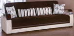 The Natural Collection is a perfect fit for your living room. This complete suite includes a three-seat sofa, loveseat, and matching armchair packed with personality and functionality. The collection features velvety performance fabric with easy-to-clean leatherette upholstery and polished wood armrests with chrome detailing. Storage space for blankets, pillows, and household essentials is built right into each seat, and every item in the set converts effortlessly into a sleeper for ultimate convenience.