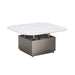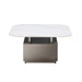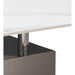 Feast your eyes on a true contemporary living room staple, the ceramic-topped cocktail table. Featuring a rich 1/2” thick white marbleized rectangular ceramic top, the piece rests delicately on a high gloss steel base in a daring graphite finish.