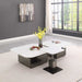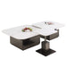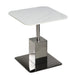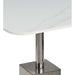 Feast your eyes on a true contemporary living room staple, the ceramic-topped lamp table. Featuring a rich 1/2” thick white marbleized rectangular ceramic top, the piece rests delicately on a high gloss steel base in a daring graphite finish.