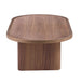 Enjoy functional design with this modern wooden coffee table. A sunken oval top rests elegantly on two pedestals in a contrasting oval and circular configuration.