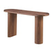 Enjoy functional design with this modern sofa table. A sunken oval top rests elegantly on two pedestals in a contrasting oval and circular configuration. The piece is finished in a warm wooden finish.