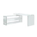 This beautiful combination of solid 1/2” clear tempered glass sides with white gloss surfaces is designed to serve you on the right, left or folded together, nesting under the desk, providing plenty of storage with 3 drawers & shelves.