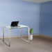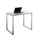 Contemporary glass and steel computer desk, Ideal choice for home office, Stylish and attention-grabbing, Can be used in the whole set with the large, small, and corner desk or mix up with just one of those two. It It features clear, tempered glass top with 2 polished stainless steel legs.