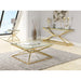 This elegant lamp table features a dazzling polished gold plated finish adorning its stainless steel frame. The double pyramid base supports a square, clear, tempered glass top that measures 20". It all comes together to display Yes contemporary excellenc