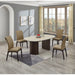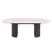 Look no further for modern design and everyday functionality with this expandable dining table. A natural patterned ceramic tabletop rests smartly on two semicircular dark veneer bases, adding thoughtful design to a practical table.