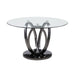 Featuring a bold three ring pedestal base with a gorgeous glass top, this contemporary table offers an elegant graphite finished steel base adding elegance to your contemporary dining room setting.