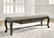 From its ornamental appliques to its large scale, this dining bench makes a bold statement. With ornately shaped legs, a plush cushioned seat and a storage drawer, the opulent bench wows with stunning style. The look is timeless. The feel? Right at home.