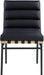 Keep guests sitting pretty for the entire meal with this Burke black vegan leather dining chair. This chair has rolled tufting for amazing support and durability and features an armless design that facilitates conversation between diners. A white oak veneer metal dowel on the back of the chair and under the seat lends additional interest to this modish dining chair option.