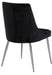 Extend contemporary panache to the dining room with this Karina Dining Chair. This dining chair features upholstery in sleek velvet for a modern look and has an armless design for a retro-inspired vibe. The stark color makes it easy to blend in with your existing decor colors or make a contrasting statement with ease. The slanted legs of this chair are finished for added modernity and to provide reliable and durable support while you dine.