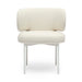 With retro curves and a sculptural metal frame, the Maureen Dining Chair makes a strong statement at the table. Wrapped in high-performance boucle or upcycled linen, its foam-padded back brings both comfort and polish.