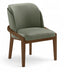 Warm and inviting, the Navo green vegan leather upholstered dining chair blends Art Deco elegance with everyday comfort. Its smooth vegan leather seat is paired with a solid wood frame in a rich brown walnut finish for timeless appeal. With its sculpted back and tailored lines, it adds sophistication to any dining setting.