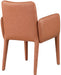 Make dining a sophisticated occasion when you add this Pelle vegan leather dining chair to the mix. The beautiful fully upholstered dining chair features soft, durable cognac vegan leather from top to bottom, giving you a high-class look without the expense and the maintenance needs of real leather. An all-iron metal inner frame keeps the chair sturdy and stout, making it a great choice for your busy household.