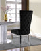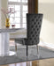 Draw the attention of anyone who steps foot in your living space with this Serafina Dining Chair from Meridian Furniture. Its luxurious velvet upholstery is both soft and elegant, adding a chic touch to your home. Its high back with a deep button tufted design gives this stylish chair a regal appearance, while rich metal legs complement its color while providing sturdy support to the chair's frame.