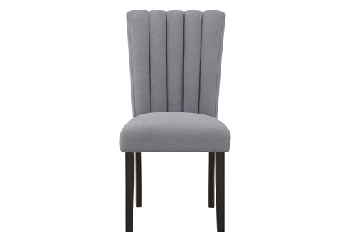 Introducing a dining chair that skillfully blends style and comfort. Dressed in sleek, soft fabric upholstery in a rich grey tone, these chairs bri...