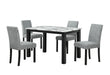 The D8032 White and Black Dining Table paired with the D9026 Grey Dining Chair Collection from Global Furniture brings a contemporary and sophisticated look to your dining area. The dining table features a sleek white melamine top with dark veining, offering a bold and modern aesthetic that effortlessly enhances any space. It is complemented by the D9026 Grey Dining Chairs, which provide comfort and style with their soft light grey upholstery and streamlined design. This elegant 5-piece set includes one dining table and four chairs, all carefully packaged to ship in one convenient carton. Perfect for both everyday dining and special occasions, this dining set offers both beauty and practicality for your home.
