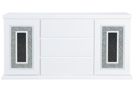 CoasterEssenceThis sideboard showcases bold modern styling with a striking wave-front design across its drawers and doors. A sleek rectangular silhouette finishe...